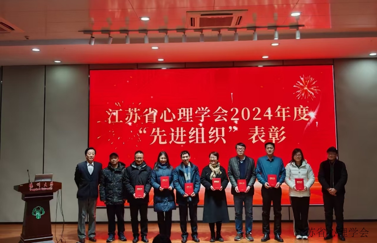 会议最后一项议程是公布学会2024年工作的先进单位并进行表彰。陈星星秘书长宣读了经过专家组评选出的先进集体名单,包括6个先进地市心理学会、7个先进专业委员会。先进地市心理学会有:常州市心理学会、南京市心理学会、南通市心理学会、苏州市心理学会、无锡市心理学会、扬州市心理学会(排名不分先后)。江苏省心理学会的先进专委会有:法制心理专业委员会、发展与教育心理专业委员会、大学生心理专业委员会、艺术心理辅导与治疗专业委员会、学校心理专业委员会、家庭教育心理专业委员会和临床与咨询心理学专业委员会(排名不分先后)。